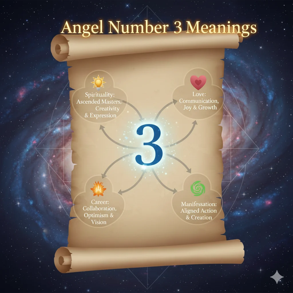 3 angel number meaning is a powerful divine message of creativity, self-expression, joy, and spiritual support. It signals that your guardian angels are near, encouraging you to speak your truth, trust your talents, and align your actions with optimism and faith. ✨